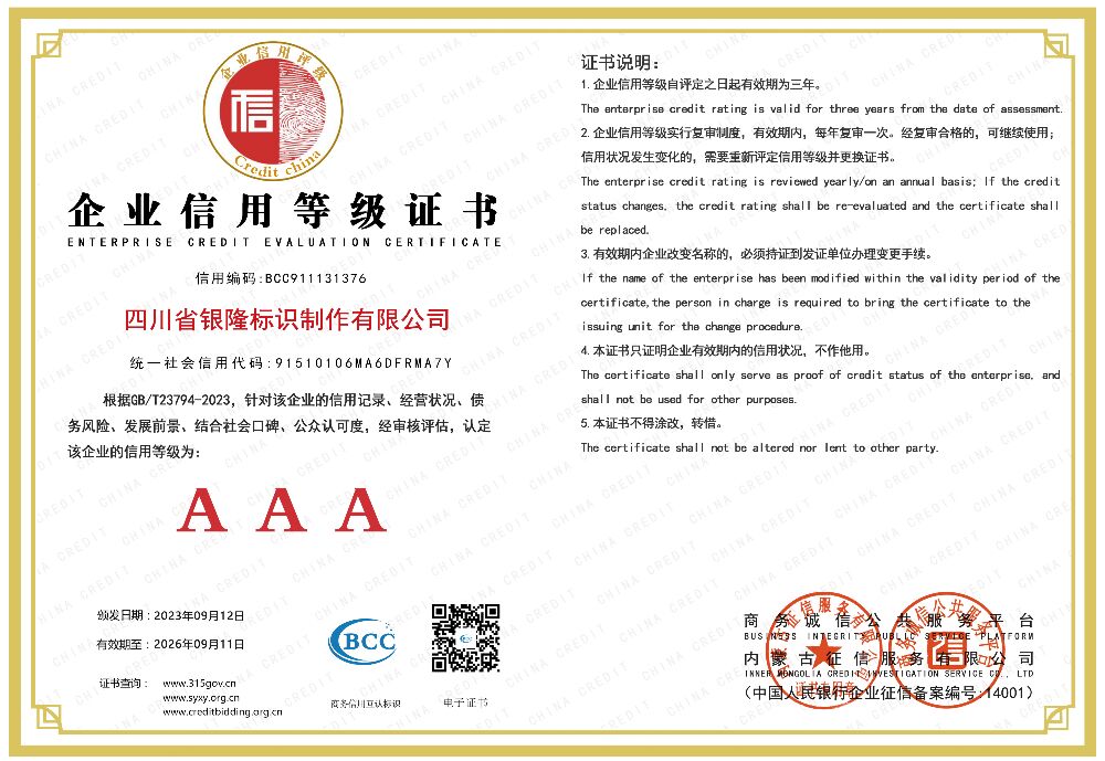 2017年我們四川省銀隆標識制作有限公司正式成立,廠房面積6000平米,我們的團隊提供從C詢顧問、標識概念設計和結構深化到產品研發、項目管理及生產、安裝、維護的一站式服務,務求為客戶提供全方位品牌形象解決方案。